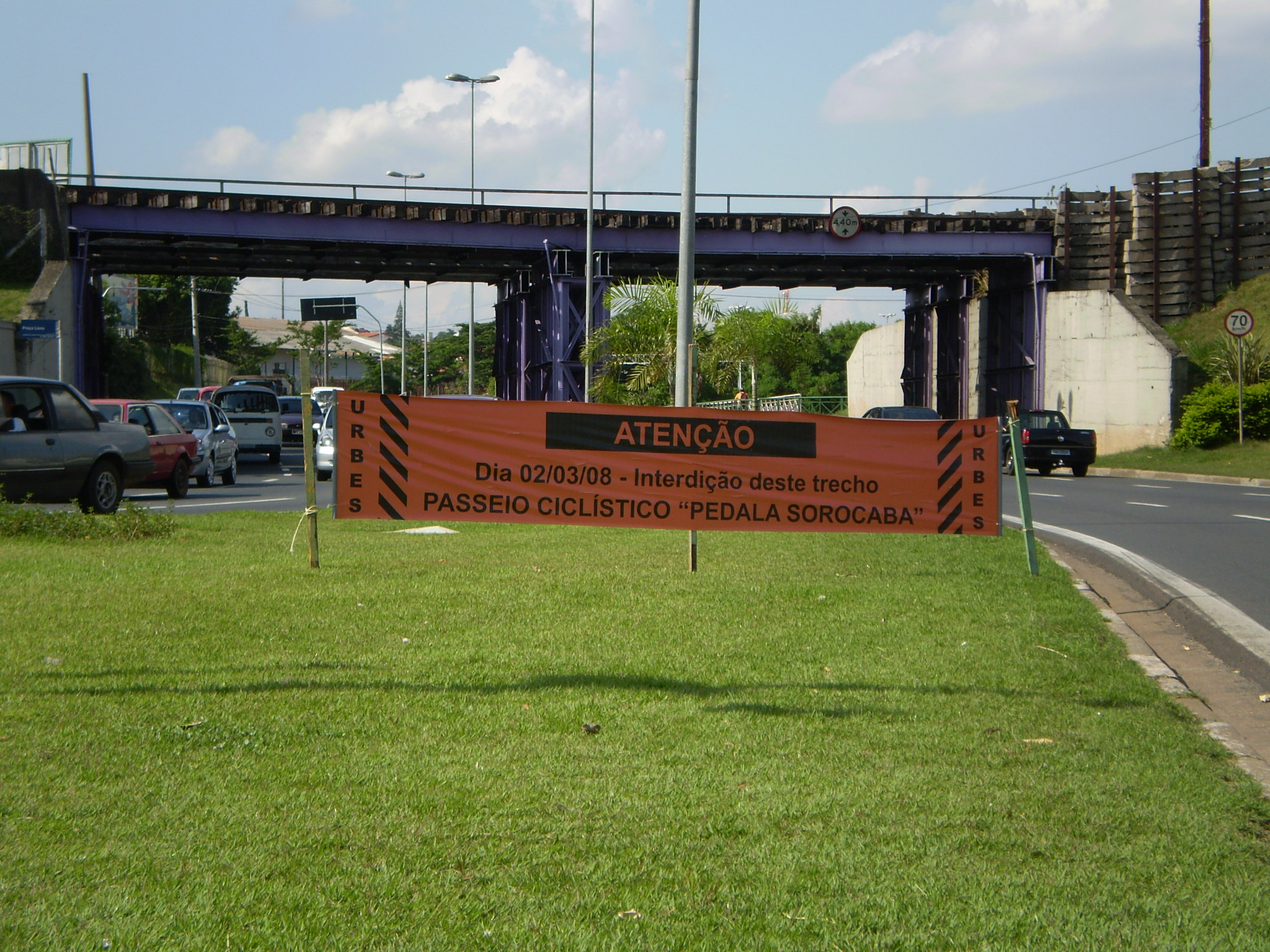 Na noite desta quarta-feira (27), a Urbes – Trânsito e Transportes instalou novas faixas em importantes pontos da cidade. O material, feito na cor laranja para chamar a atenção, anuncia a interdição da avenida Dom Aguirre e as opções de desvio para o motorista, no próximo domingo (2 de março), quando será realizado o primeiro passeio ciclístico do “Pedala Sorocaba”.