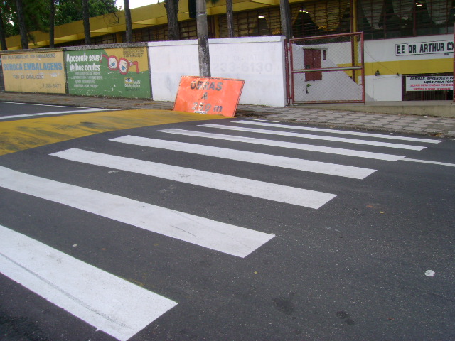 Oitenta unidades de ensino, entre centros de educação infantil, escolas municipais e estaduais, já tiveram a pintura da faixa de travessia de pedestres reforçada. Foram revitalizados quase dois mil metros quadrados de sinalização de solo.