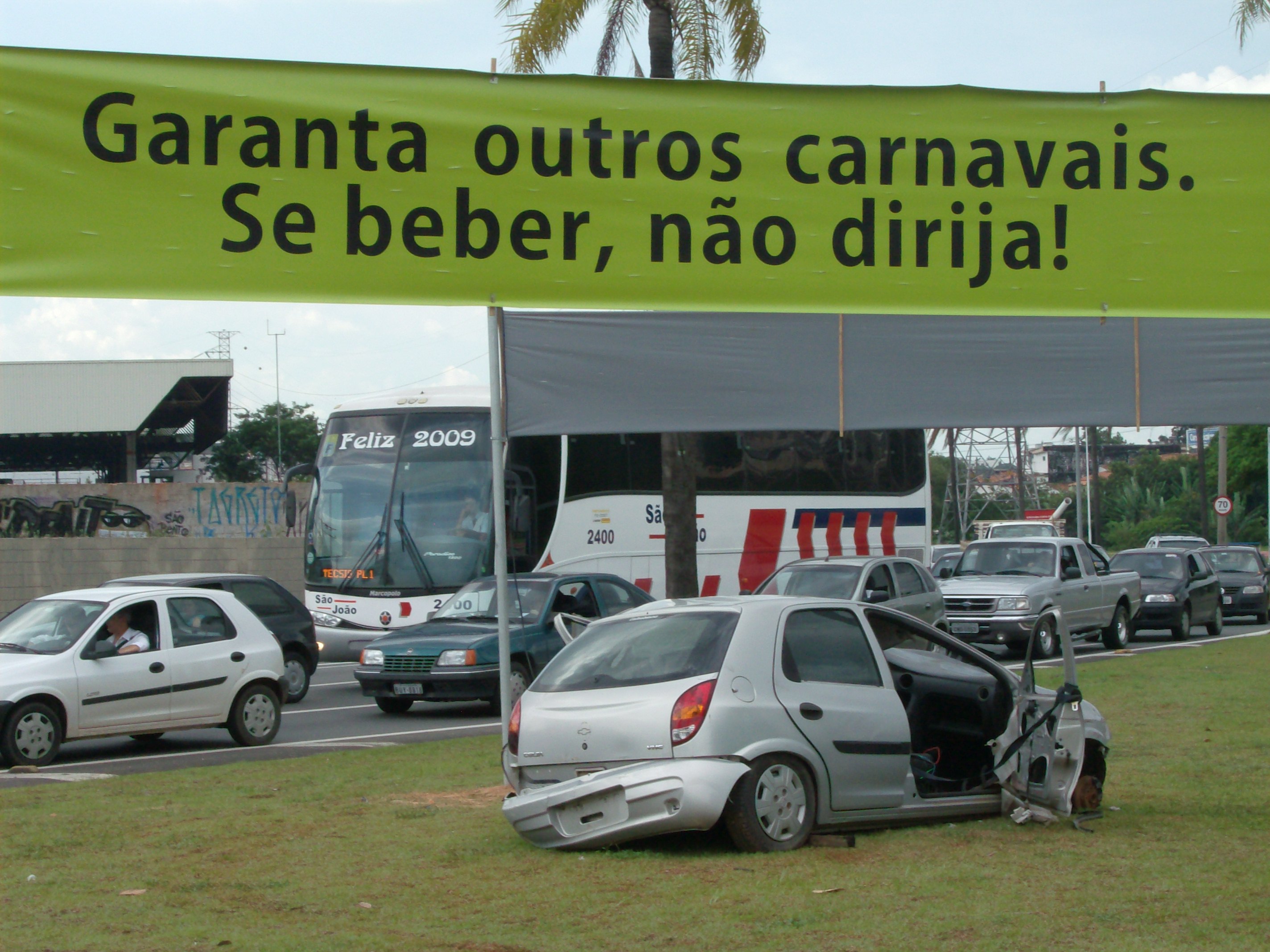 Um carro batido está sendo usado pela Urbes – Trânsito e Transportes ara chamar a atenção dos condutores que passarem pela avenida Dom Aguirre, perto da praça Dom Tadeu Strunck. E essa é apenas uma das ação de conscientização da campanha para este Carnaval. O ponto em que o veículo foi deixado foi escolhido por técnicos da Urbes e da Secretaria de Obras e Infra-estrutura Urbana (Seobe).