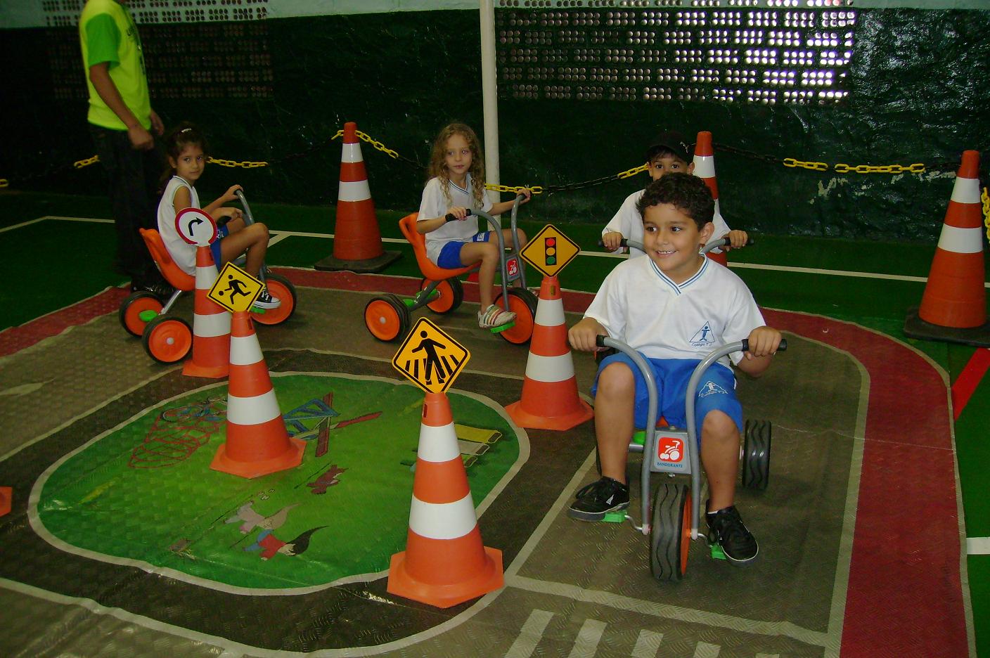 Os aluninhos com idades entre três e seis anos se divertiram e, ao mesmo tempo, aprenderam várias lições de trânsito. Com a ajuda de um vídeo, eles receberam várias explicações e logo depois percorreram um minicircuito sinalizado com faixas de travessia de pedestres, semáforos e placas, e que também conta com o traçado de uma ciclovia. As crianças ganharam, ainda, material educativo para levar pra casa e multiplicar as informações.