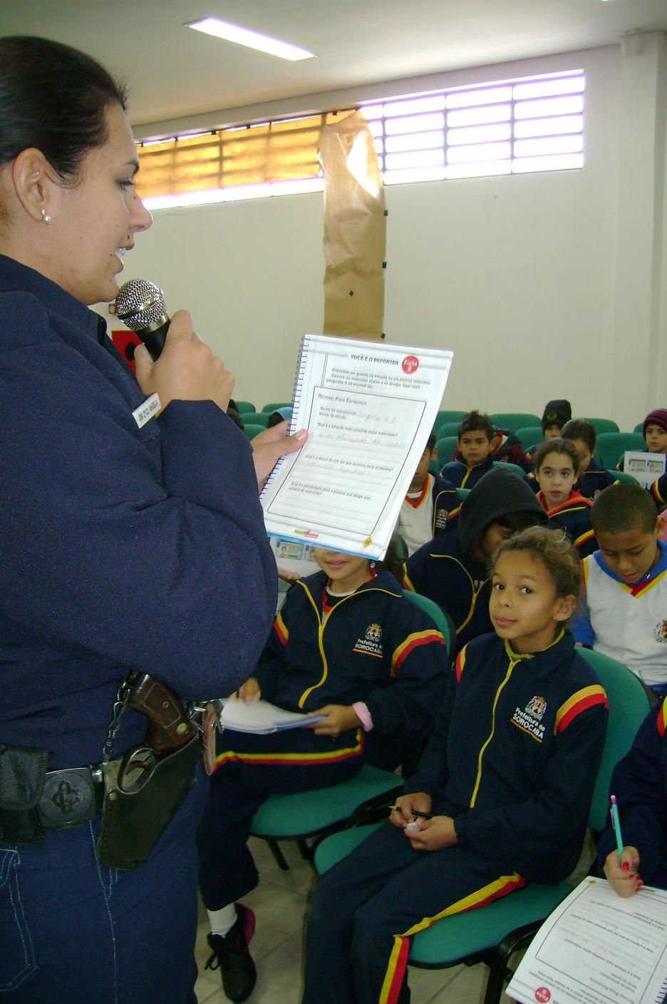 Nesta terça-feira (2), os alunos da Escola Municipal Dujara Fernandez de Oliveira, no Jardim Santo Amaro, tiveram uma aula sobre o tema. A unidade de ensino solicitou o apoio da Urbes – Trânsito e Transportes para que um agente pudesse ser entrevistado pelos alunos da 3ª série. E foi a agente Angela Rocha que conversou com 140 crianças, de nove anos, entusiasmadas em conhecer as normas de trânsito.