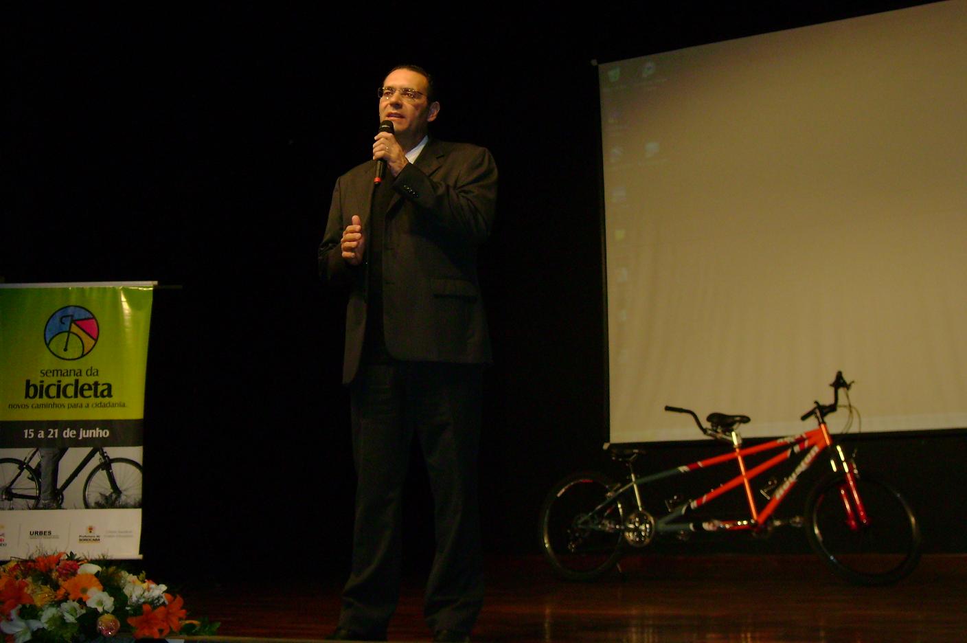 O prefeito Vitor Lippi deu uma aula de saúde e qualidade de vida na tarde desta terça-feira (16), no auditório da Escola Municipal Getútlio Vargas, durante o “1º Encontro de Educadores para a Cultura Cicloviária”, uma das atividades da Semana da Bicicleta, promovida pela Prefeitura, por meio da Urbes – Trânsito e Transportes.