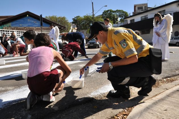 A atividade com as crianças era uma das previstas no cronograma da Semana Nacional do Trânsito de Sorocaba realizada em setembro e cujo mote foi “Atravesse na faixa, os anjos precisam de férias”, porém teve de ser adiada por conta da chuva.