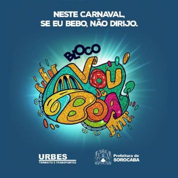 Ao fazer referência de um Bloco de Carnaval denominado “Vou de Boa”, a Urbes tem por objetivo propor que a tomada de decisão entre beber no Carnaval e não dirigir ou ser passageiro do motorista alcoolizado seja parte da estratégia de vida do folião. “Se você for beber durante o Carnaval, não dirija. Atente-se em preservar a sua vida e a dos outros. Opte por outro meio seguro de voltar para casa, seja de taxi ou de ônibus. Nossa meta constante é diminuirmos os índices de acidentes, não somente no Carnaval, mas durante o ano todo”, destaca o diretor presidente da Urbes, Renato Gianolla.