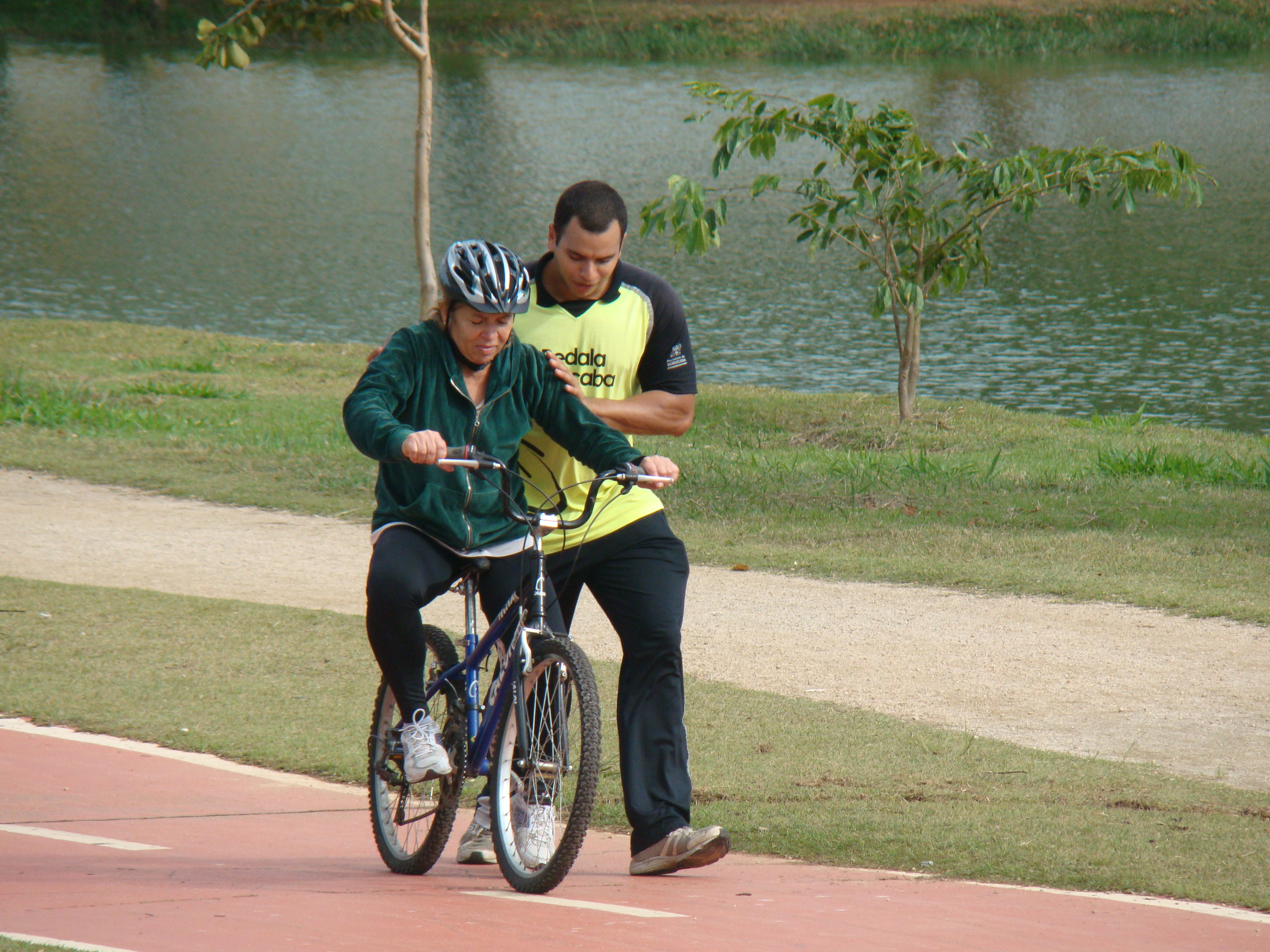 Atividade é gratuita e ensina pessoas de qualquer idade a andar de bicicleta