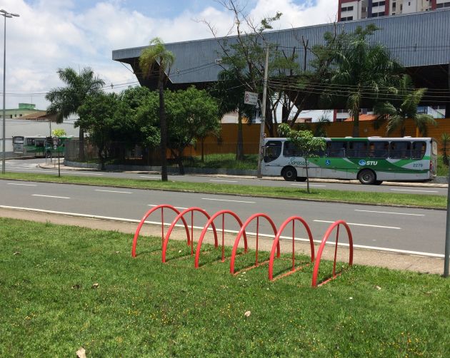 Os equipamentos metálicos são na cor vermelha, que também caracteriza a ciclovia sorocabana. Cada paraciclo tem capacidade de receber até doze bicicletas. Eles se somam a outros 50 já existentes.