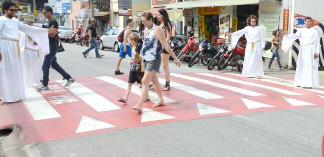 A Urbes – Trânsito e Transportes realiza nesta sexta-feira (04), das 7h30 às 8h30, a sua Campanha Faixa Viva, que contará com a presença dos anjos na travessia de pedestres da Rua Araçoiaba. Os anjos são personagens lúdicos, caracterizados de forma divertida, que trabalham para auxiliar o pedestre a solicitar a passagem ao veículo na faixa de travessia.