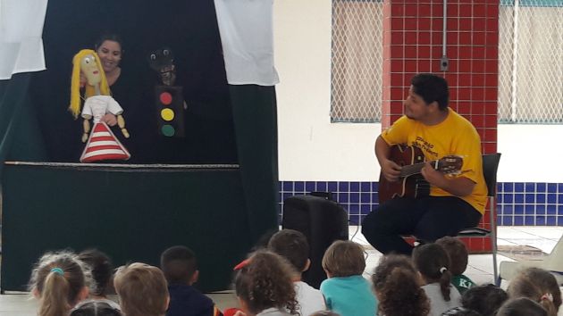 Alunos do ensino infantil de duas escolas de Sorocaba assistirão nesta semana ao teatro de fantoches “Sai Acidente!”, apresentado pela Urbes- Trânsito e Transportes em parceria com a Secretaria da Educação. A atividade de Educação para o Trânsito traz cenas protagonizadas pelo sr. Semaforildo, d. Faixalinda, Calçadinha e Tia Cadeirina, sempre interrompidas pelo personagem Acidente, e conta com a participação de um músico contador de histórias que conduz com canções divertidas as apresentações.