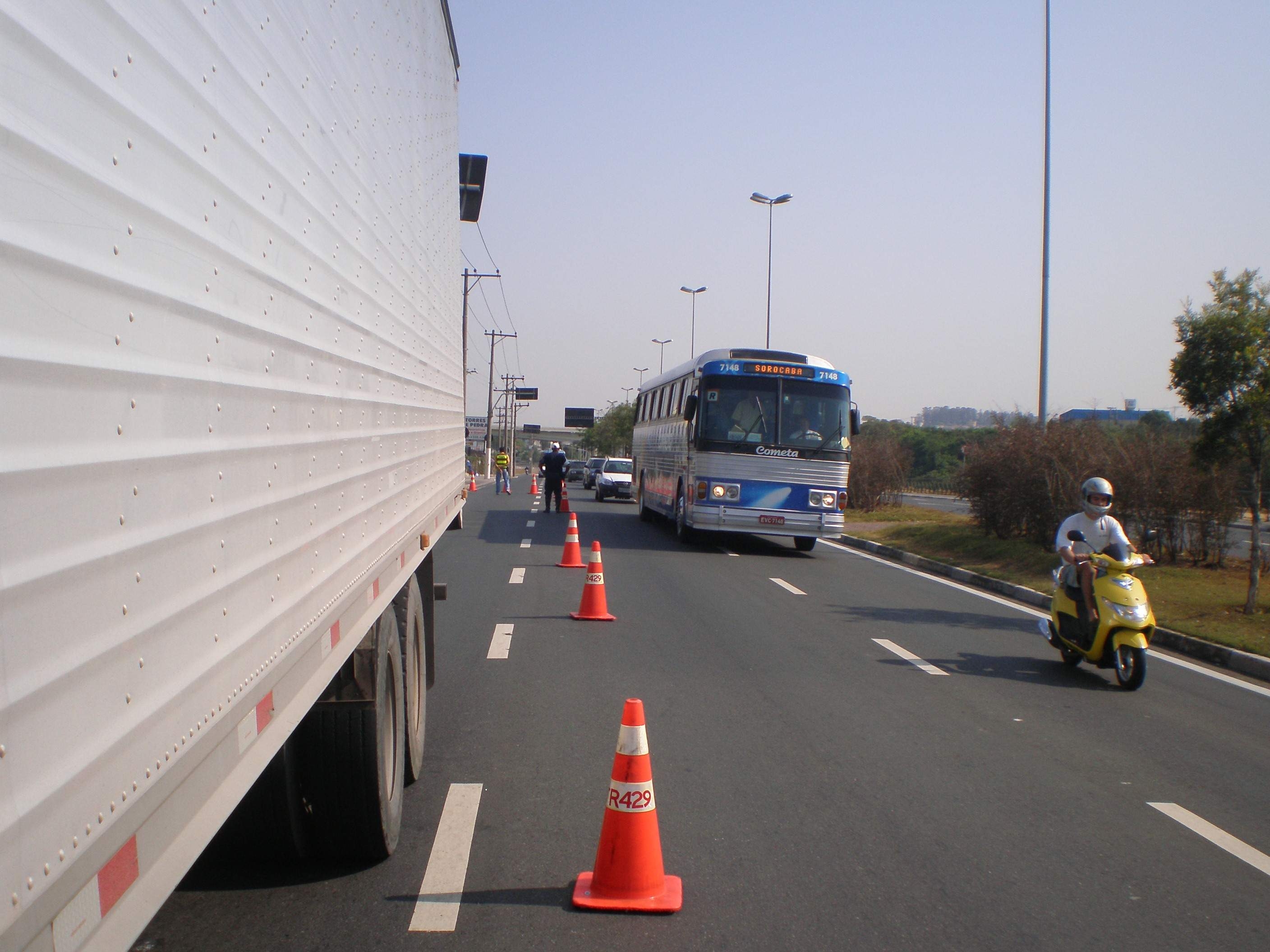 Antes de entrar na cidade, na rodovia José Ermírio de Moraes, no acesso para a rodovia Celso Charuri, há placas informando sobre a proibição da circulação desse tipo de veículo. Segundo os técnicos da Urbes, também há placas com o mesmo alerta de restrição nas duas avenidas onde é válida a proibição.