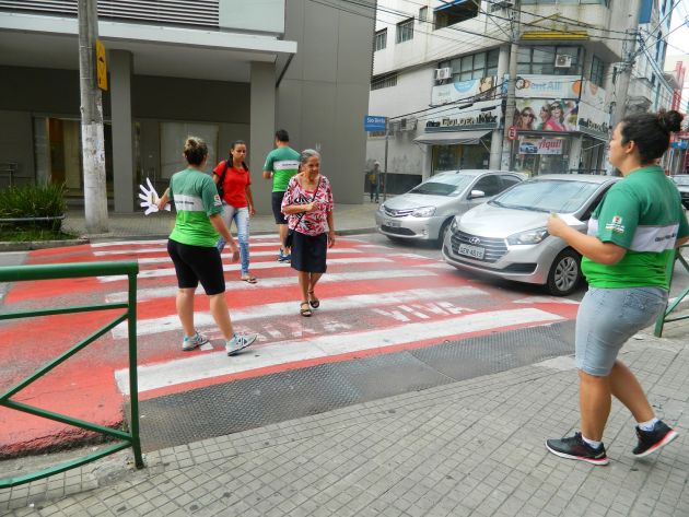Incentivar pedestres e motoristas a terem mais cordialidade no trânsito a fim de promover o respeito e a segurança de ambos foram as metas da Urbes - Trânsito e Transportes durante mais uma ação da Campanha “Faixa Viva – é na faixa que o respeito pede passagem”, realizada nesta segunda-feira (09). Desenvolvida pela manhã na faixa de pedestres da Rua São Bento com Rua Quinze de Novembro, e no período da tarde na faixa de pedestres da Av. Juscelino Kubitschek de Oliveira, perto da Rodoviária, a atividade contou com a presença dos agentes educadores da Urbes, que orientavam as pessoas a sinalizar a intenção de atravessar na faixa  para que os veículos parassem e permitissem a travessia dos pedestres com segurança. A auxiliar de farmácia Cibele Cristina Petarnela, de 39 anos, comentou que gosta da iniciativa e se sente mais segura para atravessar. “A ideia é bem legal pois, conscientiza tanto os pedestres quanto os motoristas e oferece mais segurança para a gente que atravessa,” afirmou.