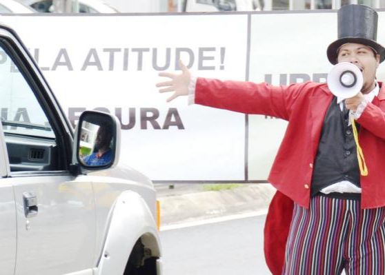 Os arte educadores da Urbes orientam os pedestres quanto à forma correta de sinalizar a sua intenção de atravessar na faixa solicitando a passagem e o condutor a respeitar essa preferência.