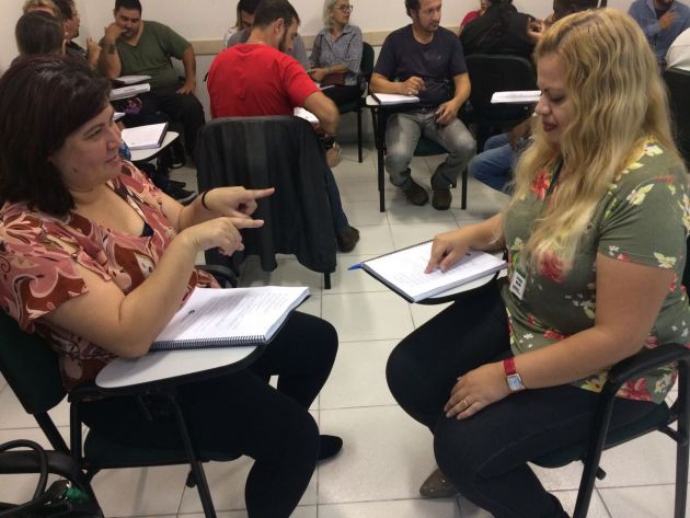 Durante o curso, teve conversação em Libras entre os funcionários e dinâmicas. Numa delas a professora simulou que era uma munícipe com deficiência auditiva e precisava de atendimento através de sinais.