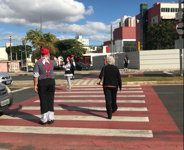 Mímicos fizeram ação em faixas de pedestres da av. Juscelino Kubitschek