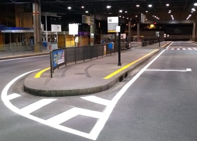 Terminais de ônibus recebem revitalizações nas sinalizações de solo