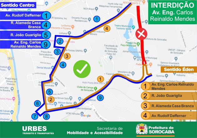 Os motoristas têm duas alternativas para trafegar na região com a interdição. Além do mapa que acompanha essa notícia também é possível, da avenida Engenheiro Carlos Reinaldo Mendes, ingressar na avenida 3 de Março, na rua Profa. Célia Marques Mendes, avenida Vidal de Araújo e avenida 28 de Outubro para retornar à Engenheiro Carlos Reinaldo Mendes.