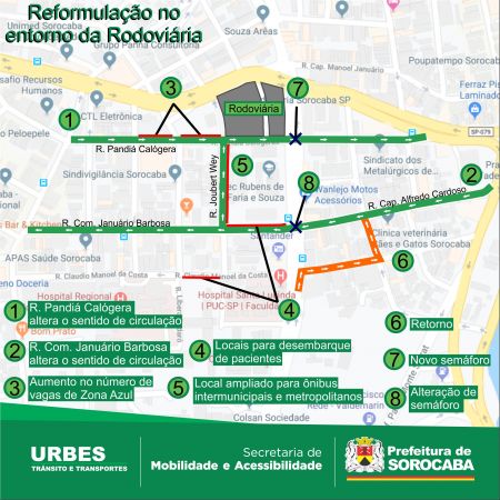 Com as mudanças, os veículos percorrerão a rua Pandiá Calógeras no sentido da rua Salvador Correia para a avenida Comendador Pereira Inácio. No cruzamento da rua Pandiá Calógeras com a avenida Comendador Pereira Inácio será instalado um semáforo, garantindo a possibilidade de ingressar na avenida sentido centro, sentido bairro ou prosseguir em frente pela rua Júlio Hanser, chegando na avenida Presidente Juscelino Kubitscheck e na sequência na avenida Dom Aguirre. Os ônibus que partem da rodoviária e todos os demais veículos que trafegam pela Pandiá Calógeras terão muito mais facilidade para alcançarem a marginal do rio Sorocaba.