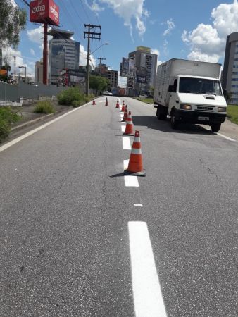 Serão revitalizados aproximadamente 300 metros quadrados de sinalização de solo que incluem faixas de travessias de pedestres, linhas tracejadas, ponto de ônibus, entre outros.