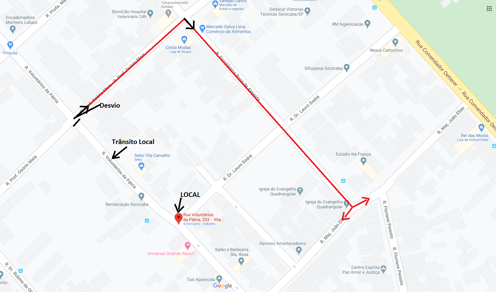 A Urbes – Trânsito e Transportes orienta os condutores que precisarem circular por aquela região que façam desvio utilizando as ruas Professor Osório Maia, Escolástica Rosa de Almeida e Major João Elias como opção para acessar novamente a Rua Voluntários da Pátria, mais à frente, ou seguir outros trajetos.