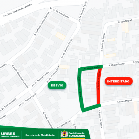 Devido a esta melhoria, a Urbes - Trânsito e Transportes em parceria com a Semob (Secretaria de Mobilidade) informa aos cidadãos que a via estará interditada somente o trecho  entre as Ruas Miguel Saker e Lauro Miguel.
