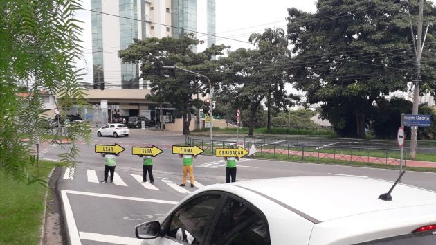 Essa ação ocorreu no terça-feira (10) na avenida Armando Pannunzio e contou com 5 pessoas segurando placas com formato de seta e as balançavam como se estivessem indicando para onde eles iriam virar, com a frase “usar seta é uma obrigação”, uma palavra por placa para ficar claro a mensagem.