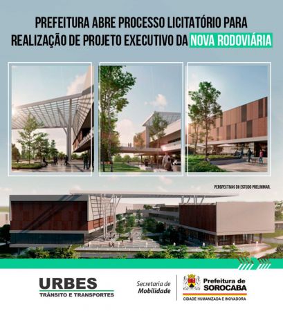 A Urbes - Trânsito e Transportes, através de sua Comissão Permanente de Licitações, divulga para conhecimento do público interessado que se encontra aberta a licitação, na edição do Jornal Município de Sorocaba desta terça-feira (20), o edital de licitação para contratação de empresa especializada responsável pelo projeto executivo de construção da nova Rodoviária.