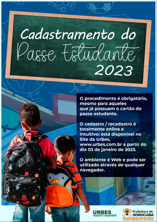 A Urbes Trânsito e Transportes disponibilizará a partir de janeiro do próximo ano o sistema de cadastramento do passe estudante para os alunos da rede de ensino no município. O procedimento é obrigatório, mesmo para aqueles que já possuem o cartão do passe estudante.