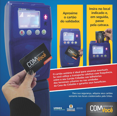 O cartão vale-transporte é recarregável e armazena os créditos adquiridos pela sua empresa.